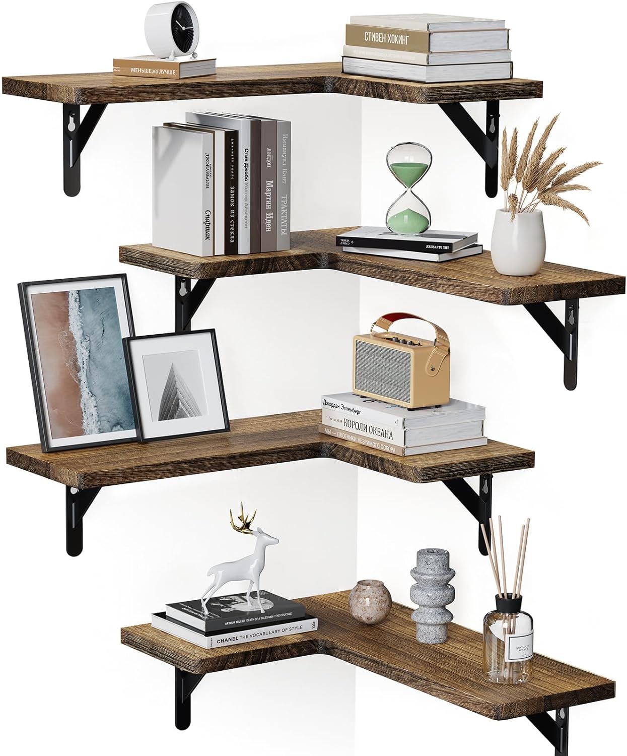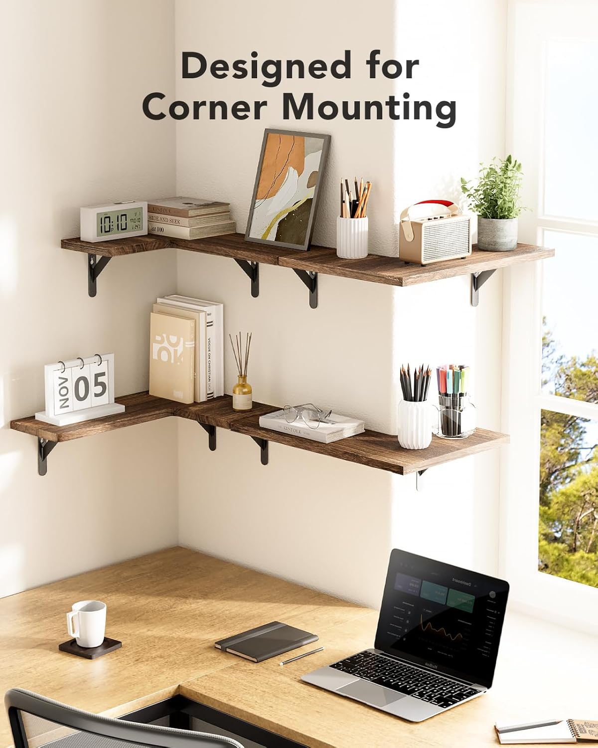 Complement Any Room: The natural wood grain of our corner shelf set can add a charming look that complements any decoration style. Whether you need to add wall shelves to your bedroom or utilize a corner in the living room, the attractive design will look great with any décor.