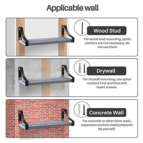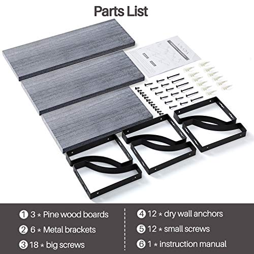 AMFS03 Floating Shelves for Bedroom, Bathroom, Living Room, Kitchen (Gray)