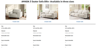 Amada 89" Sofa, 3 Seater White Couch for Living Room