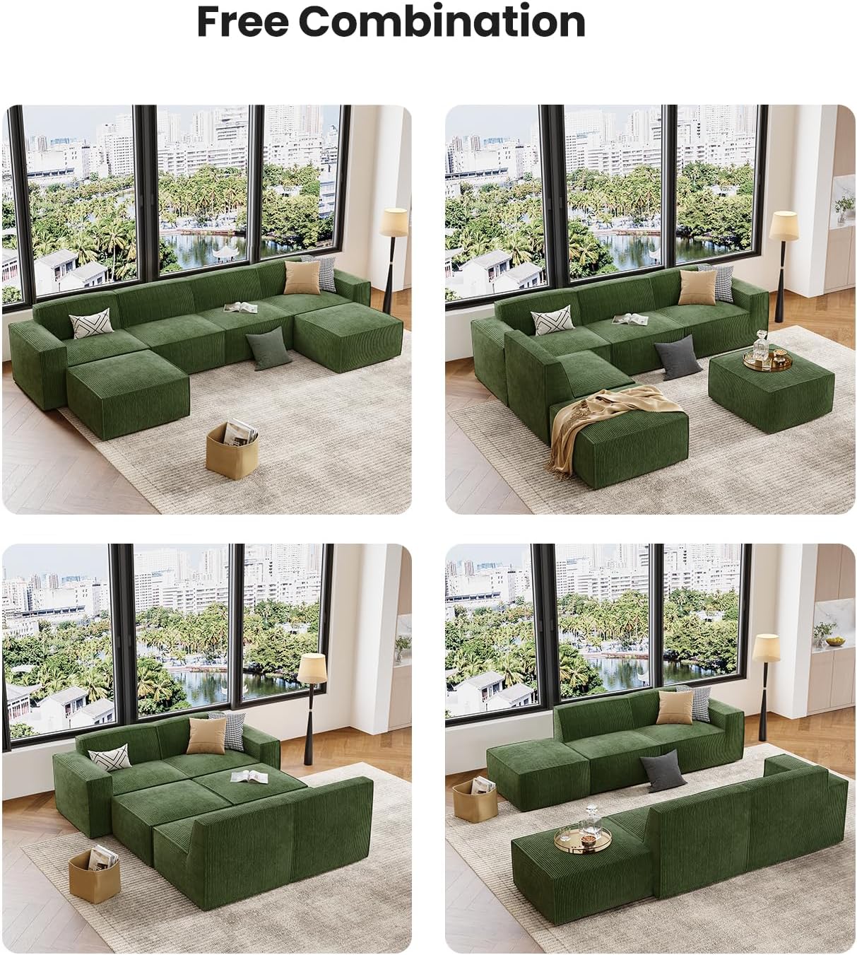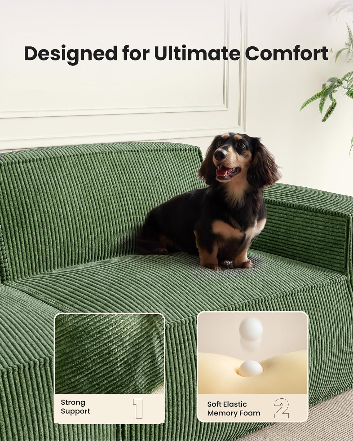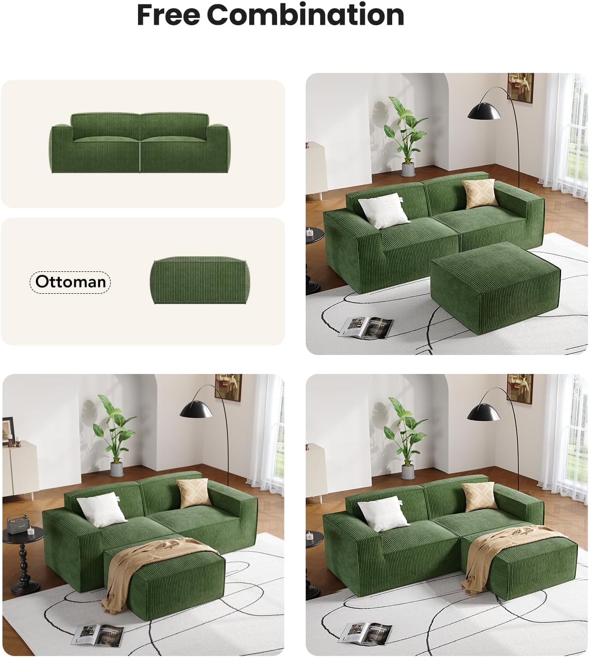 Amada Homefurnishing 80" L Shaped Sofa Modular (2-Seater & 1 Ottoman, Green)