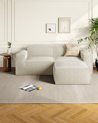 AMADA HOMEFURNISHING 80" L Shaped Sofa Modular, Corduroy Cloud Couches with Deep Seats & High-Back, Upholstered Couches for Living Room Bedroom with Ottoman, No Assembly Required (2-Seater & 1 Ottoman, Beige White)
