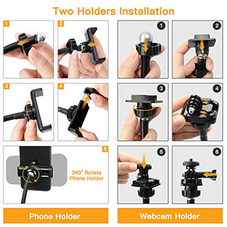 AMWS03 Webcam Stand and Phone Holder for Cell Phone 11 Pro XS Max XR X 8 7 6 Plus and Logitech C925e, C922x, C930e, C922, C930, C920, C615, Brio