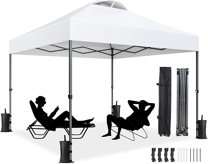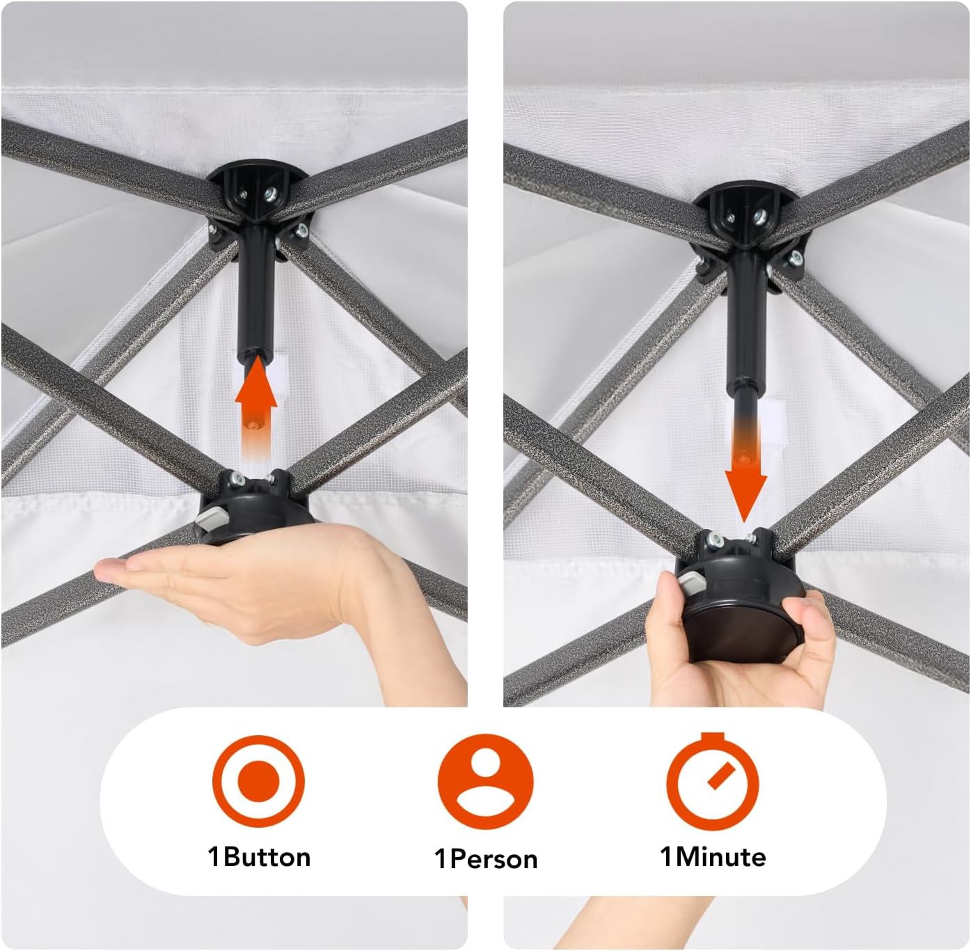 𝗢𝗻𝗲 𝗕𝘂𝘁𝘁𝗼𝗻 𝗤𝘂𝗶𝗰𝗸 & 𝗘𝗮𝘀𝘆 𝗦𝗲𝘁𝘂𝗽: AMADA 10x10 pop up canopy features patented one push center lock tech, just open the canopy, push the button, and adjust the height for instant shade in only a minute!This outdoor canopy for patio can be set up by one person without any tools. Three adjustable height settings with one central button and no-pinch height adjusters to allow easy setup and breakdown ensure convenience and safety.