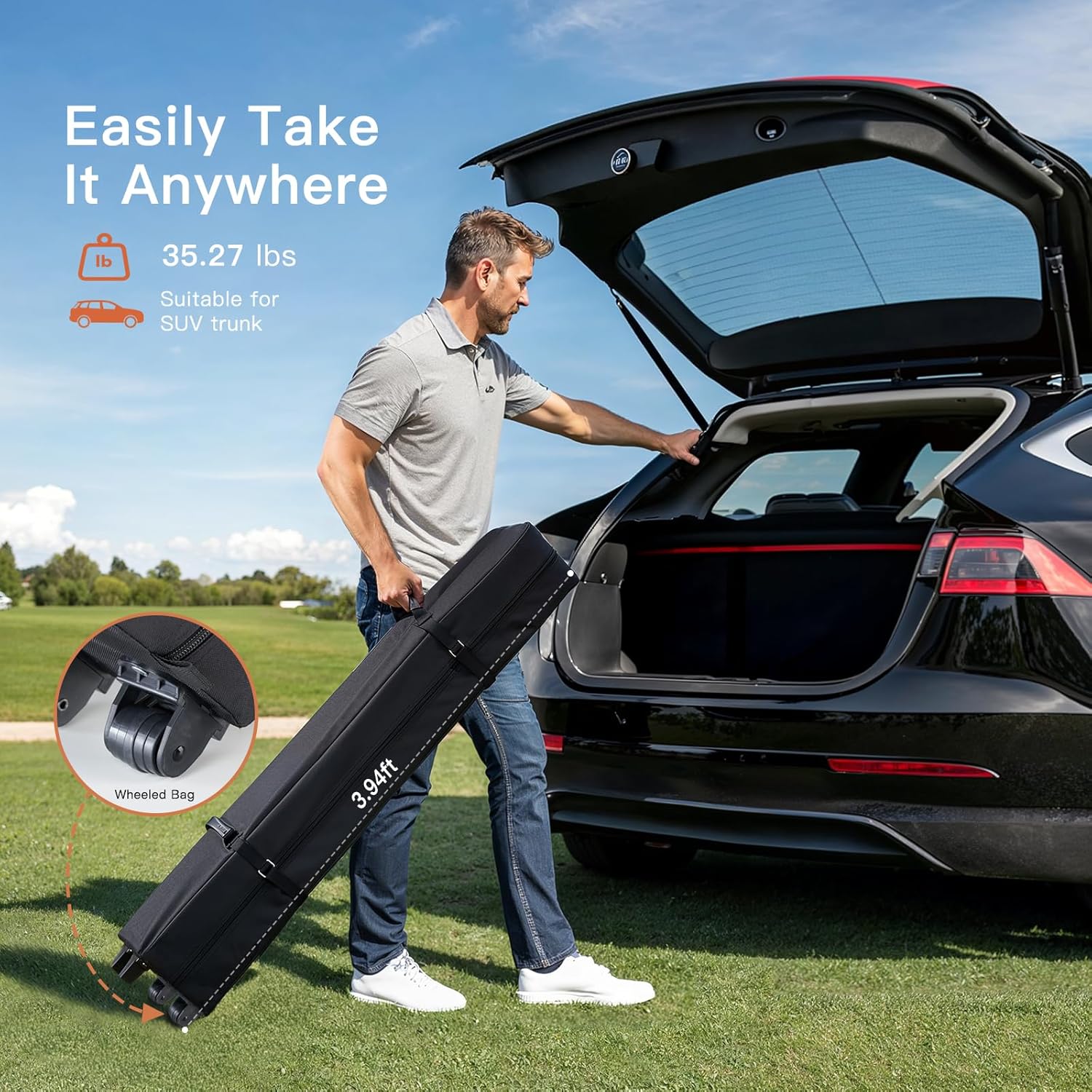 - 𝗣𝗼𝗿𝘁𝗮𝗯𝗹𝗲 & 𝗕𝘂𝗶𝗹𝘁 𝗙𝗼𝗿 𝗧𝗵𝗲 𝗢𝘂𝘁𝗱𝗼𝗼𝗿𝘀: This 10x10 pop up canopy effortlessly folds into a compact size (3.94ft L), fitting most SUV trunks for easy transport. The included durable wheeled bag allows for smooth rolling, reducing the hassle of carrying. With compact size and sturdy wheels, you can glide it across various terrains effortlessly. Perfect for camping, beach outings, craft fairs, tailgating, farmer markets, outdoor BBQs, and more!