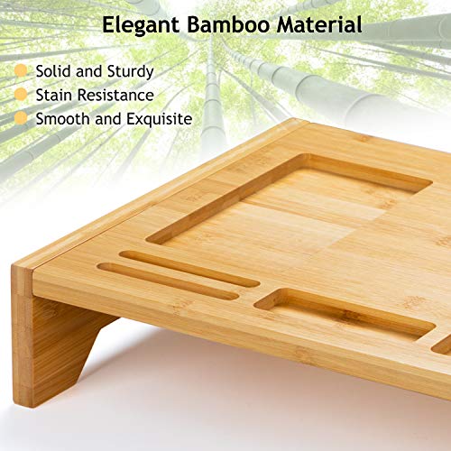 - 🎋STURDY BAMBOO MONITOR STAND: Finished by selected superior bamboo material that can sit on the desk stably without wobble. Its regular weight capacity is up to 80lbs, Load better than plastic stand, not easy to break like glass ones.