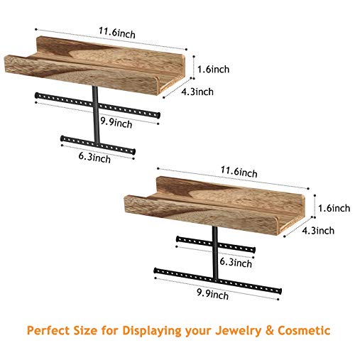 - 💝【Rustic Jewelry Holder with Ledge Shelf】 Designed with torched finish wood and powder coated metal bracket, the jewelry holder can not only enhance the aesthetic flare, but also serve as a delightful decoration to fit any decor style and become an eye-catching spot in your room.