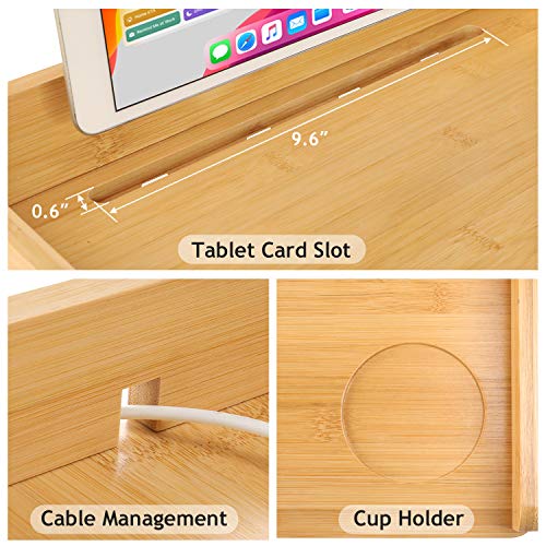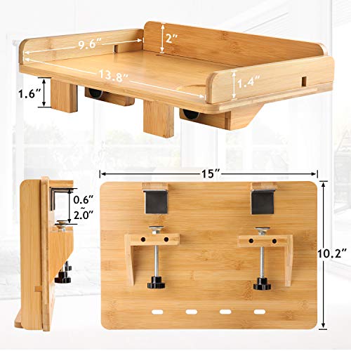 - 🌿PREMIUM SUSTAINABLE BAMBOO: This bedside shelf is made of 100% recycled bamboo which makes it super sturdy and can securely hold up to 33lbs. This 13.8”L x 9.6”H shelf surface is a great choice for beds with a side rail, putting your 13-inch Macbook, remote & water within arm's reach.