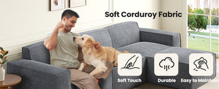 Luxurious Corduroy Comfort: Indulge in the soft, inviting touch of premium corduroy fabric. This flexible sofa set features a rich texture that provides an incredibly comfortable seating experience. The fabric is also stain-resistant, pill-resistant, and pet-friendly, making it perfect for everyday use. Plus, its durability ensures lasting beauty while adding a touch of elegance to your living room.