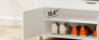 - 【Engineered for Safety & Strength】 This premium shoe storage bench combines 300lb weight capacity with thoughtful safety features for complete peace of mind. The hinge system ensures smooth, controlled opening that stays securely in position - no sudden drops or pinched fingers. Rounded corners eliminate sharp edges. Constructed from solid wood planks, it features a scratch-resistant painted surface that maintains its wood-grain elegance while withstanding daily use. The reinforced base provide added stability whether used as seating or storage. Durable enough for generations yet stylish enough for any decor - where uncompromising safety meets heavy-duty performance