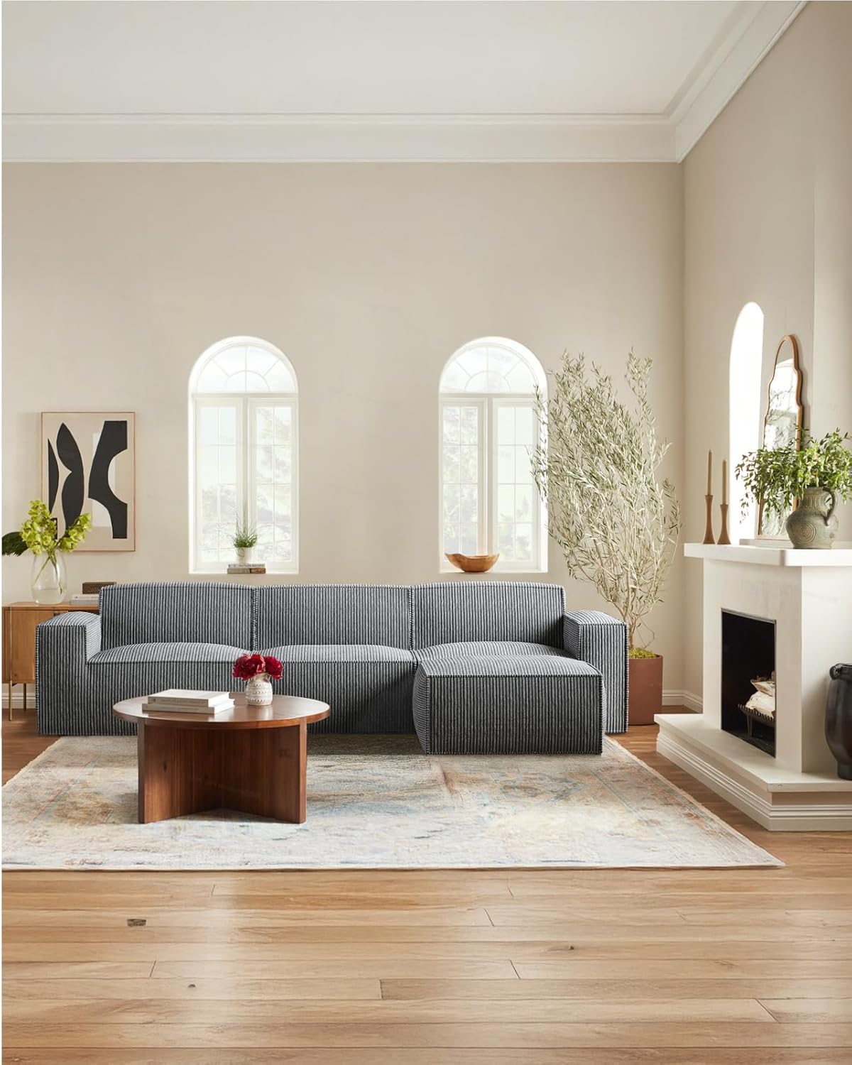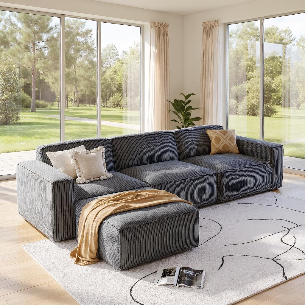 Luxurious Corduroy Comfort: Indulge in the soft, inviting touch of premium corduroy fabric. This flexible sofa set features a rich texture that provides an incredibly comfortable seating experience. The fabric is also stain-resistant, pill-resistant, and pet-friendly, making it perfect for everyday use. Plus, its durability ensures lasting beauty while adding a touch of elegance to your living room.