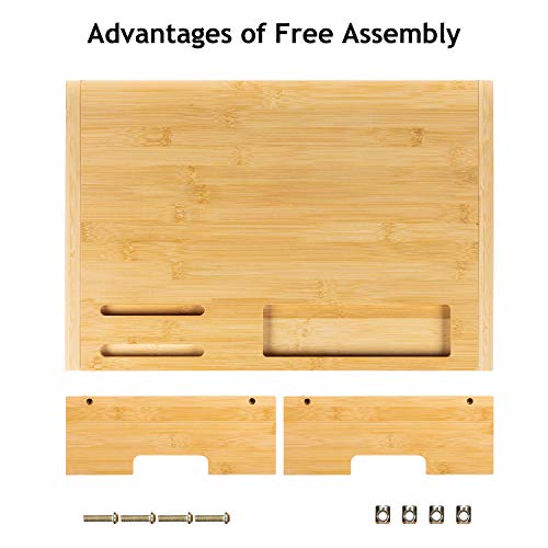 - 🎋SIMPLE DESK ORGANIZER: Two dedicated phone notches and a stationery and essentials tray design monitor riser reduces clutter and effectively increases the storage space of the desktop.